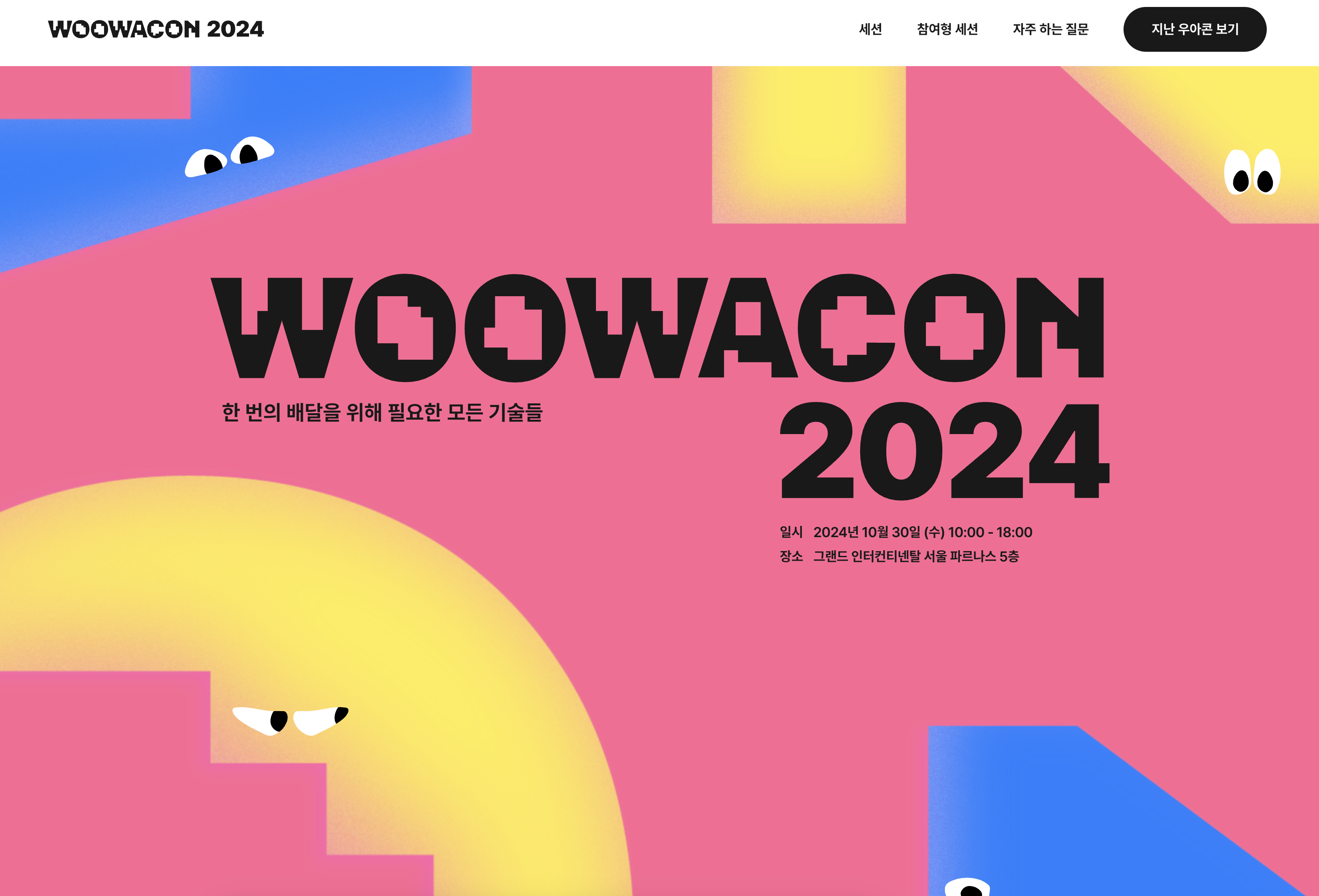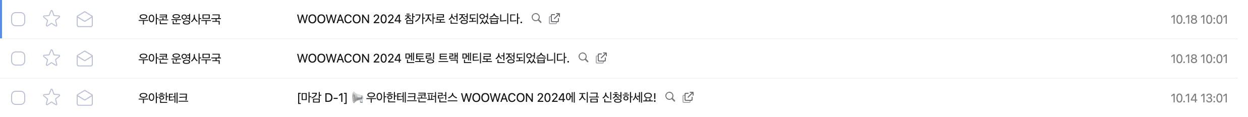 평소 우아한 테크 메일을 구독하고 있는데 2024년에도 어김없이 우아콘을 개최한다는 소식을 받게되었다. 인프콘이나 유스콘 등 이런 기술 컨퍼런스에 관심이 많은 편이라 이번에도 신청을 하게 되었다. 지인에게 표를 받아 간 인프콘 외에 이런 랜덤 추첨식 컨퍼런스는 항상 떨어졌기 때문에 큰 기대를 하지 않고 있었는데 이번에는 운 좋게 참가자로 선정되어서 갈 수 있게 되었다.