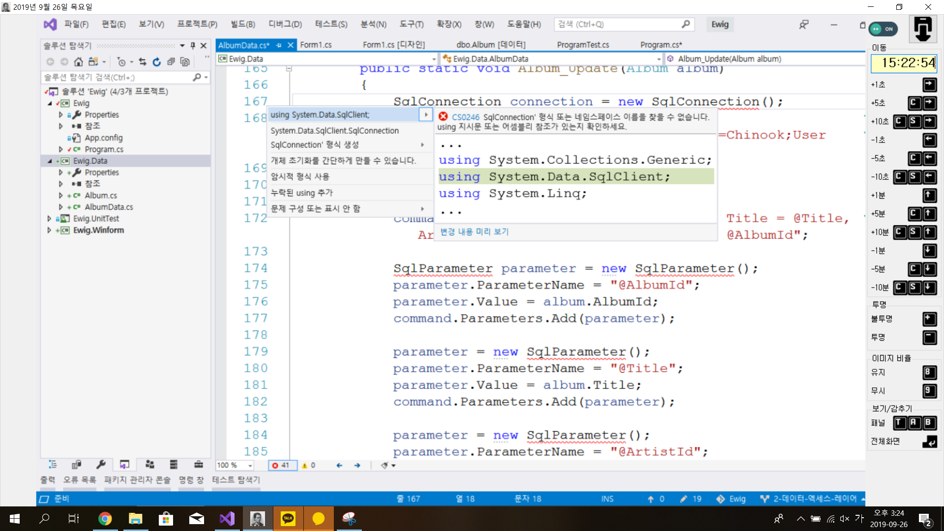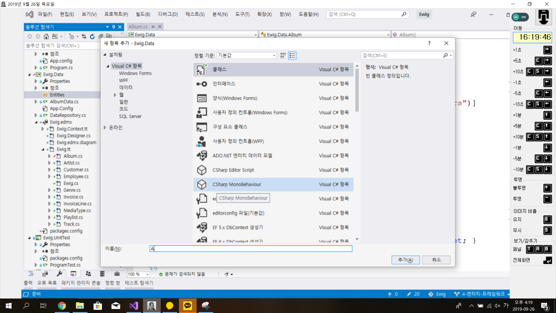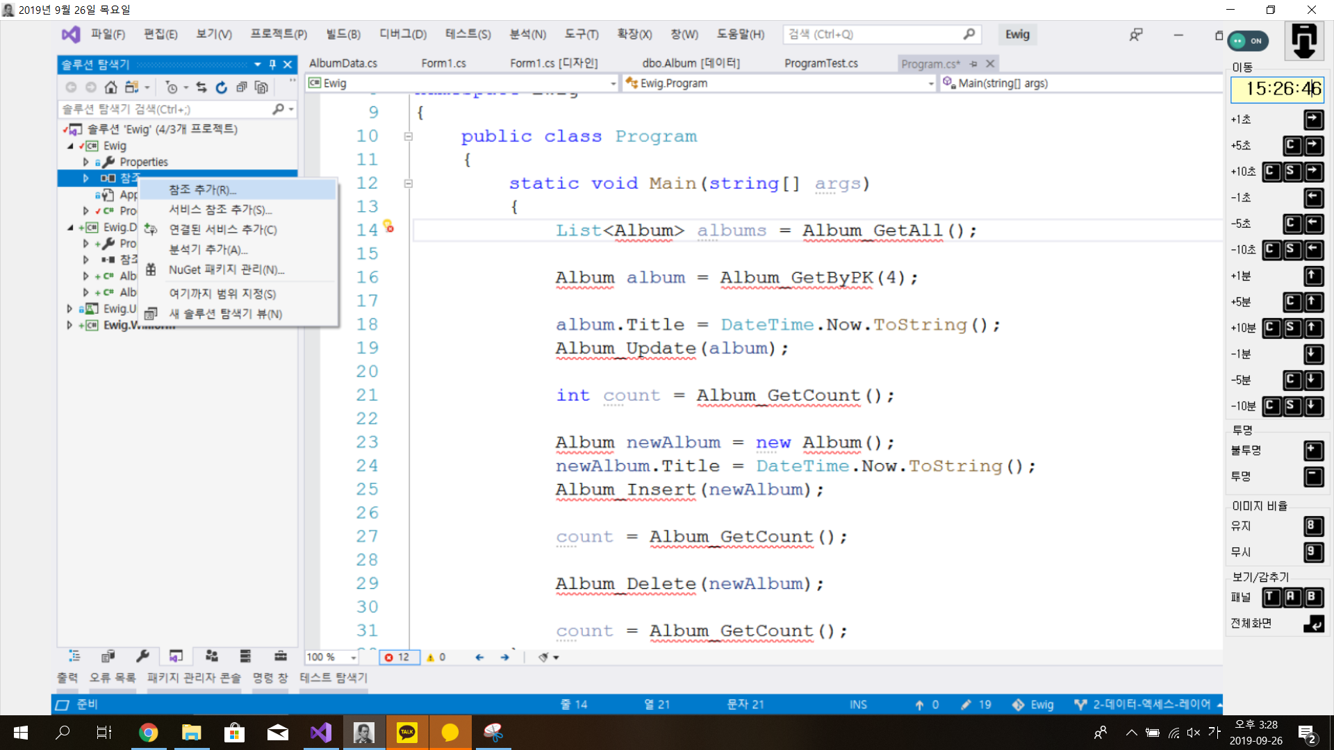 - AlbumData.cs로 옮겨진 코드들 때문에 빨간줄이 뜨는데 이때 참조해주어야함 !!!!