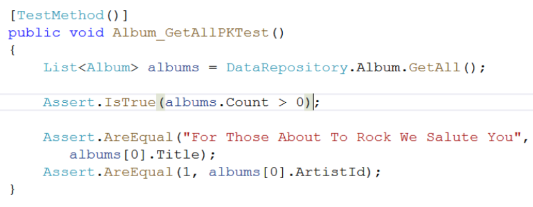 앨범을 가져오는 코드 - Album_GetByPKTest()