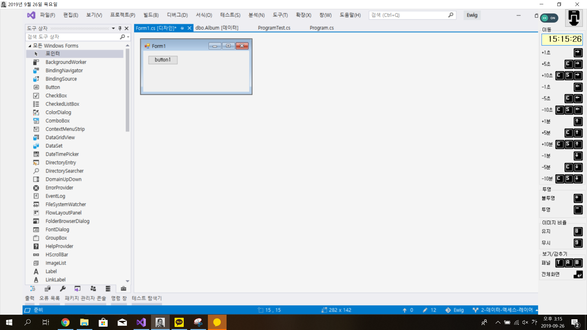 1. 보기 > 도구상자 > (모든 윈폼 컨트롤 버튼)
