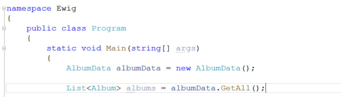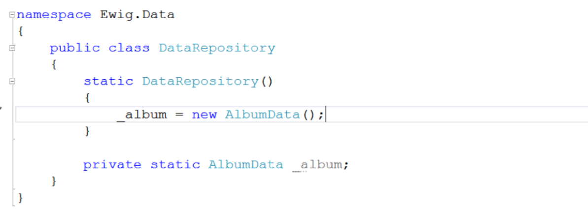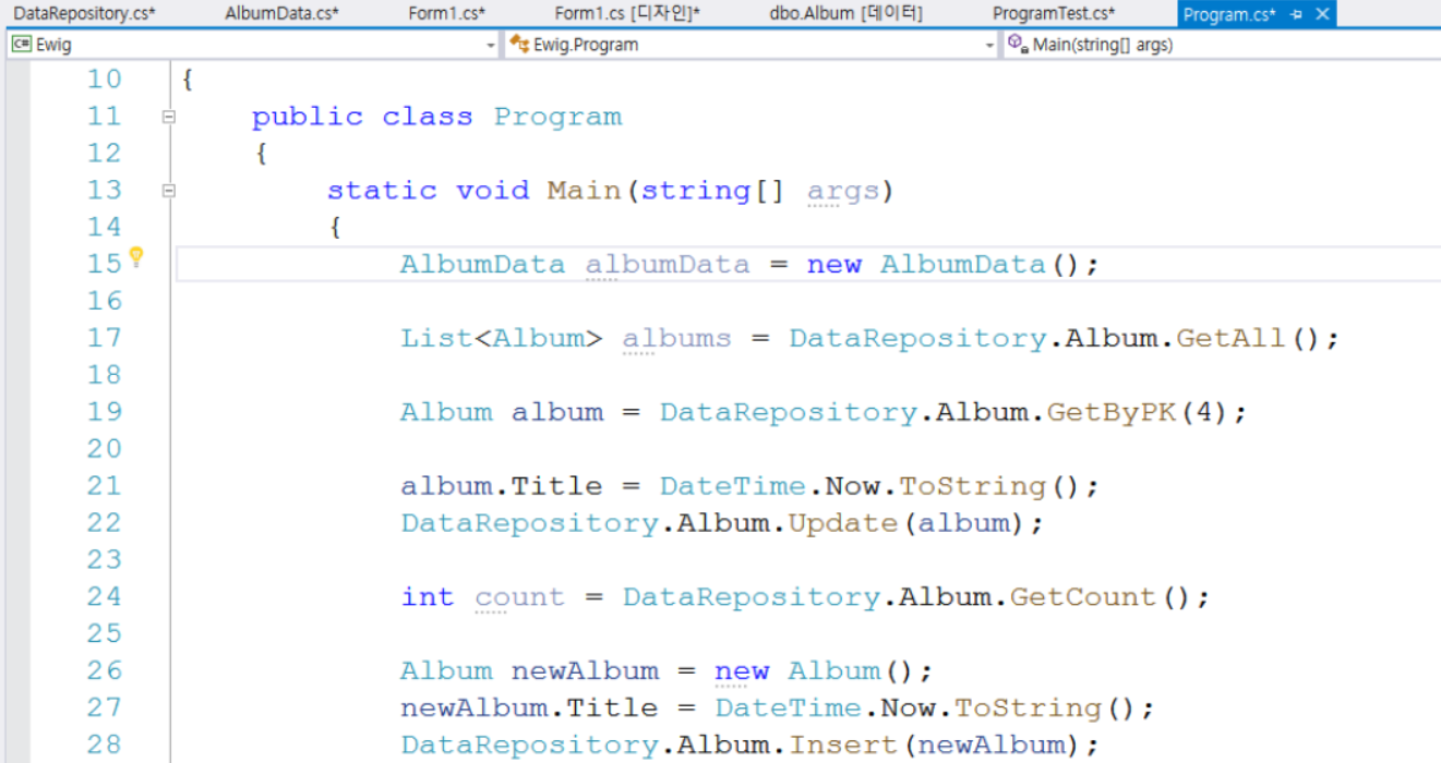 > AlbumData.cs 클래스 만듦 > 만들었던 코드들 다 붙여넣기하고 > using space 해줌!!! > static 다 빼줌 > 함수앞에붙였던 Album이라는 접두어도 다 빼줘도 됨!!!