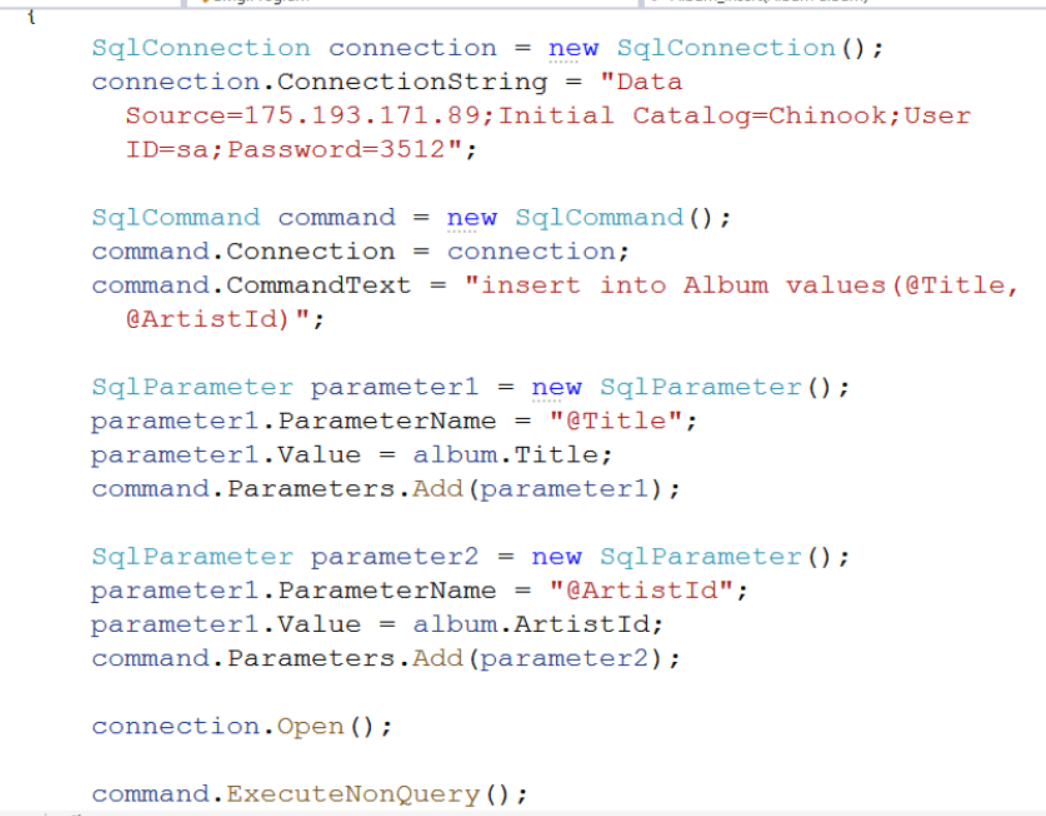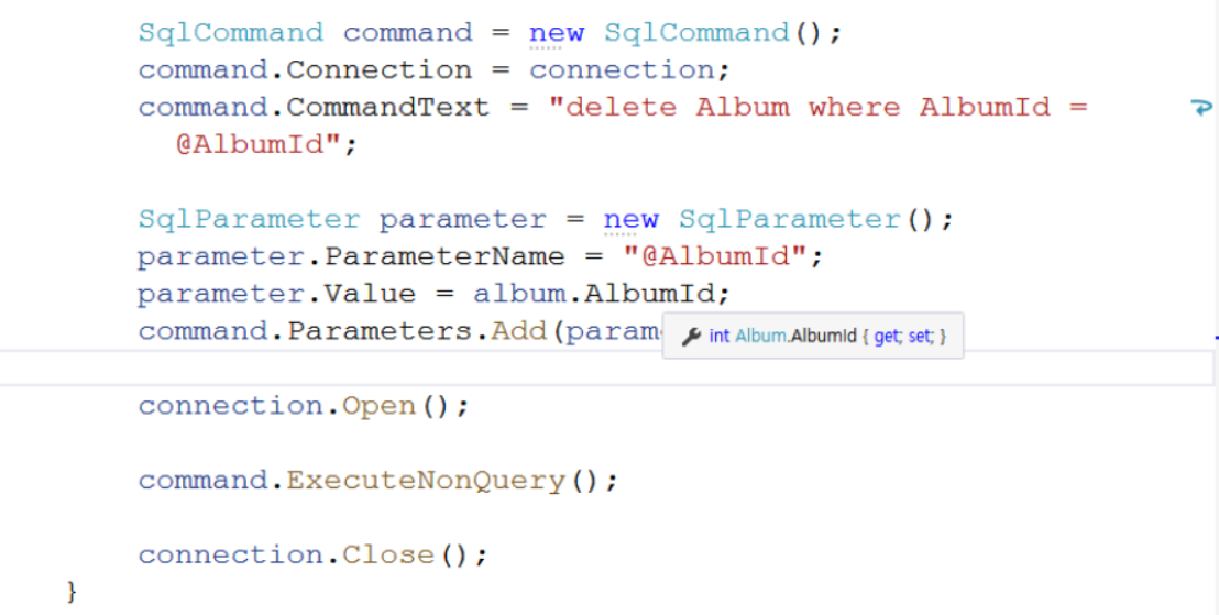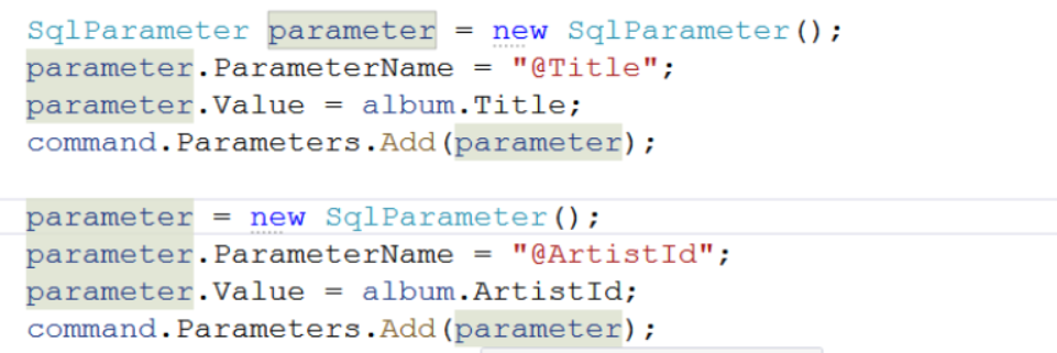 // 이때 AlbumId가 자동증가 설정이 안되있었기때문에 우리는 AlbumId도 @로 넘겨주었어야함.