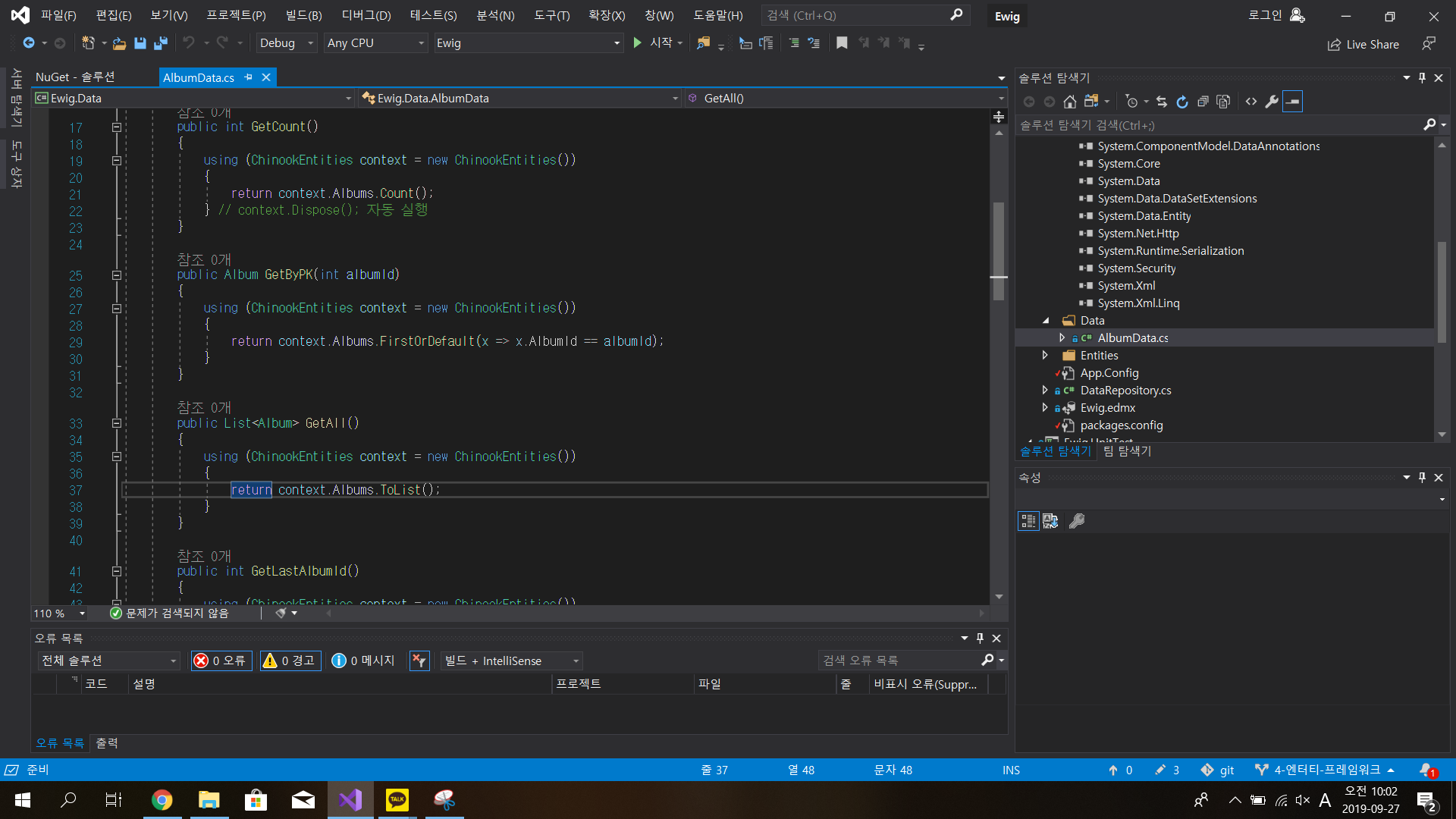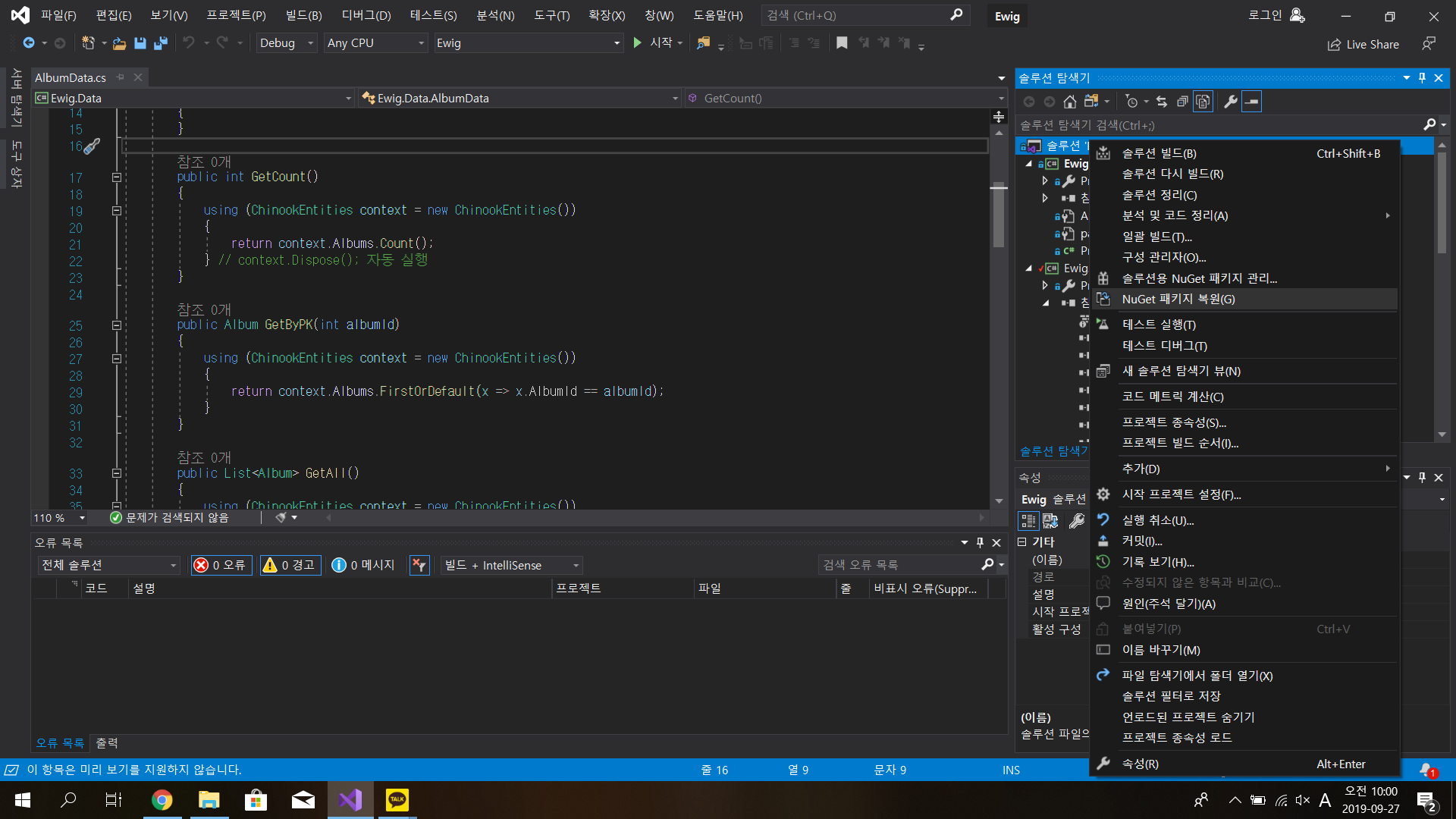 1. NuGet 패키지 복원을 해본다 --> 나같은 경우 더이상 새로 내려받을게 없었다 여기서는 문제가 x