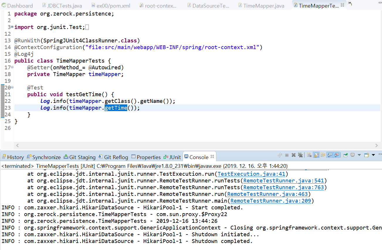 3-3-5. 최종적인 확인을 위해서 TimeMapperTests 클래스를 이용해서 테스트 작업을 진행한다