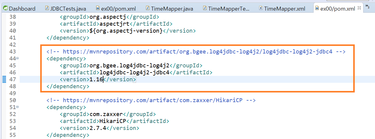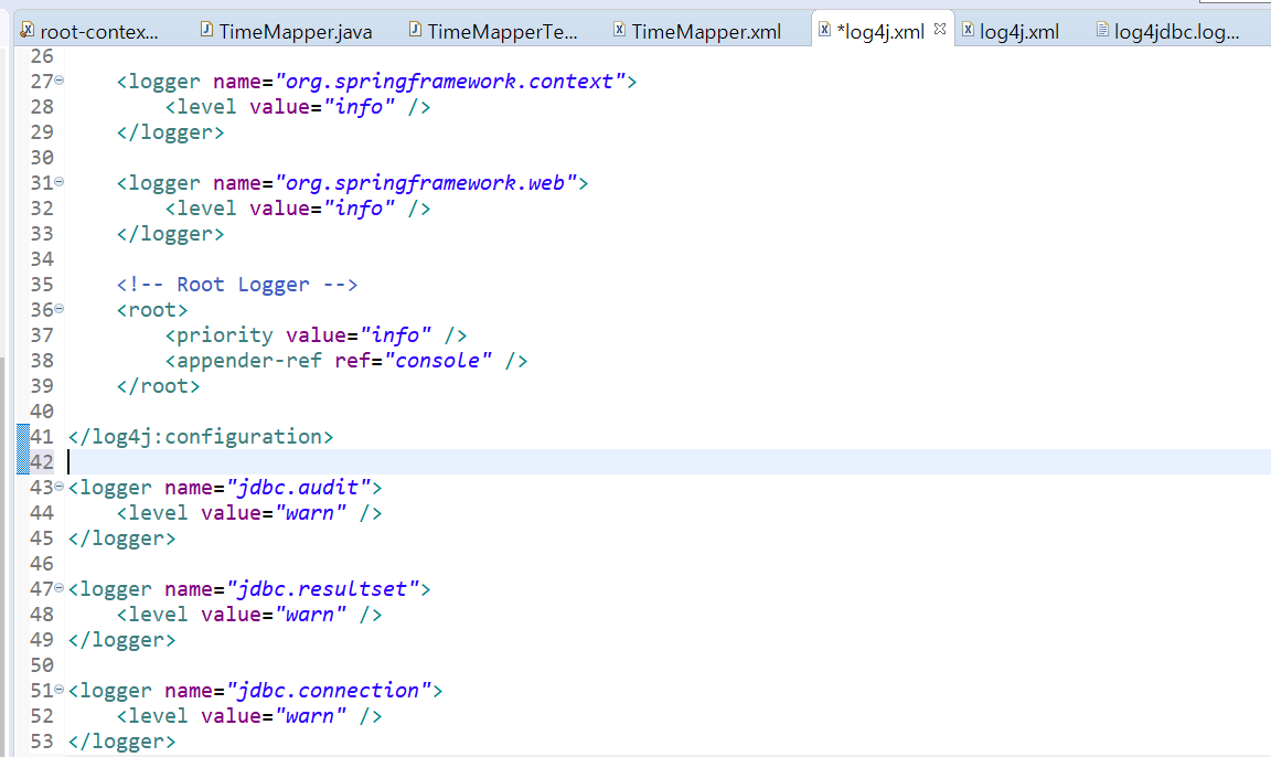 추가한 후에는 1) 로그 설정 파일을 추가하는 작업과 2) JDBC의 연결정보를 수정해야 한다.