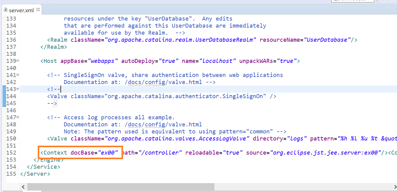 - 프로젝트 메뉴 아래 Servers에서 server.xml을 찾아들어간다.
