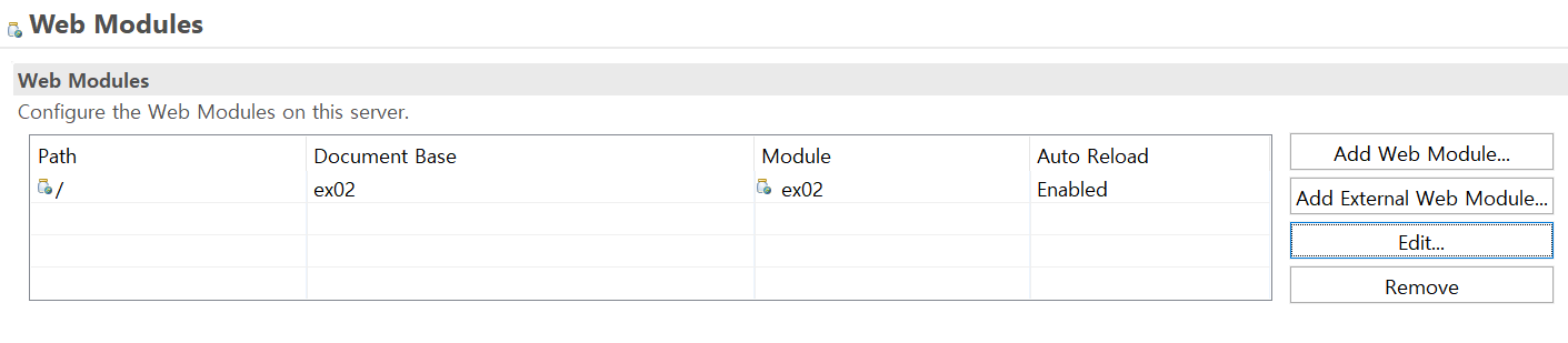 list.jsp는 우선 정상적으로 URL 처리가 되는지를 확인해야 하므로, Tomcat으로 실행해서 확인한다. 'ex02' 프로젝트를 선택하고, Run on Server 메뉴를 통해서 실행한다. Tomcat을 최초로 이용해서 프로젝트를 실행했다면 'http://localhost:8080/controller/board/list'로 접근해서 아래와 같은 화면이 보이는지 확인한다.