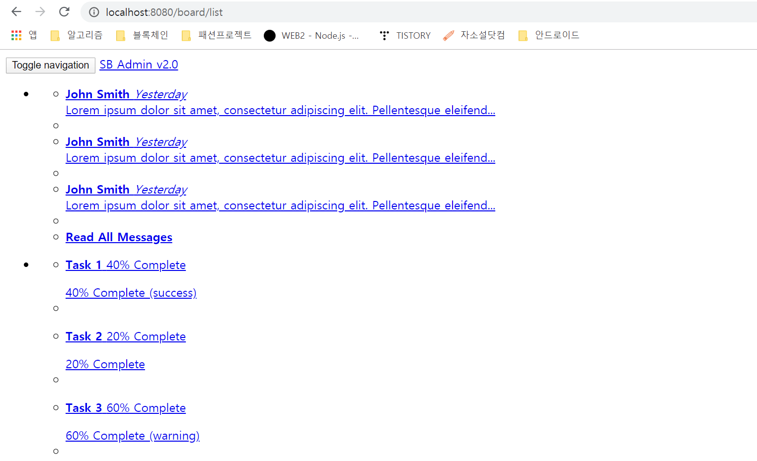 1-1. SB Admin2 페이지 적용하기