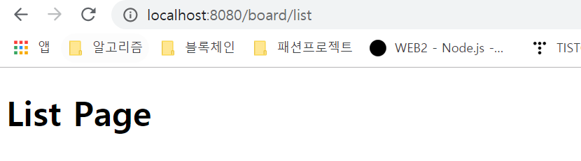 브라우저에서는 CSS 등이 완전히 깨진 상태이므로 텍스트만 출력되는 것을 볼 수 있다.
