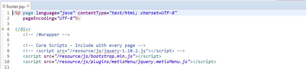 SB Admin2는 <div>들 중에서 id 속성값이 'page-wrapper'부터가 핵심적인 페이지의 내용이므로 list.jsp 파일의 처음 부분에서 <div id='page-wrapper'> 라인까지 잘라서 header.jsp의 내용으로 처리한다.